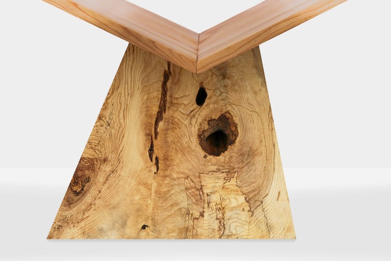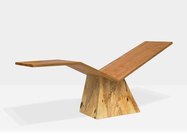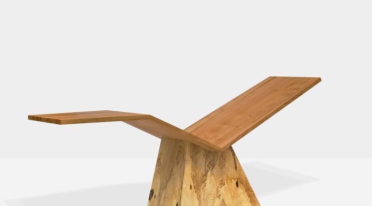 Cette chaise longue cherche à créer un dialogue entre deux essences vosgiennes, deux textures et deux histoires : celle d’un bois marqué par le temps et celle d’une essence oubliée. L’objet devient un hommage à la diversité du bois et à la beauté de ses imperfections, sublimées par une approche à la fois artisanale, esthétique et respectueuse du matériau.