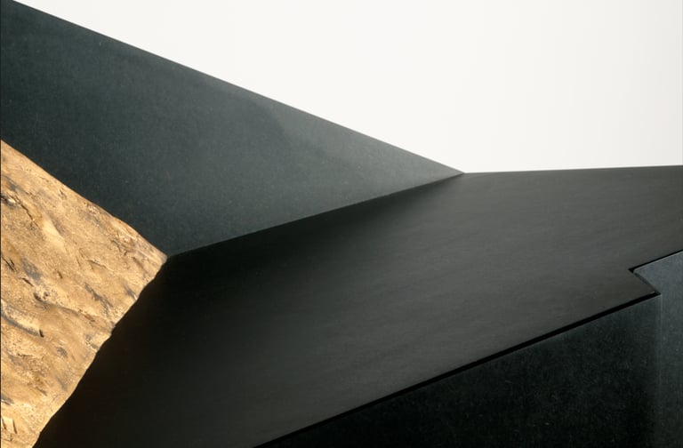 Ce meuble bas inspiré par les paysages de montagnes, allie puissance et élégance. Posé directement au sol pour imposer sa présence, ses lignes épurées témoignent de sa force et de son caractère. La puissance des montagnes est capturée dans chaque détail : la texture robuste des roches, les teintes profondes du noir qui enveloppe son extérieur.